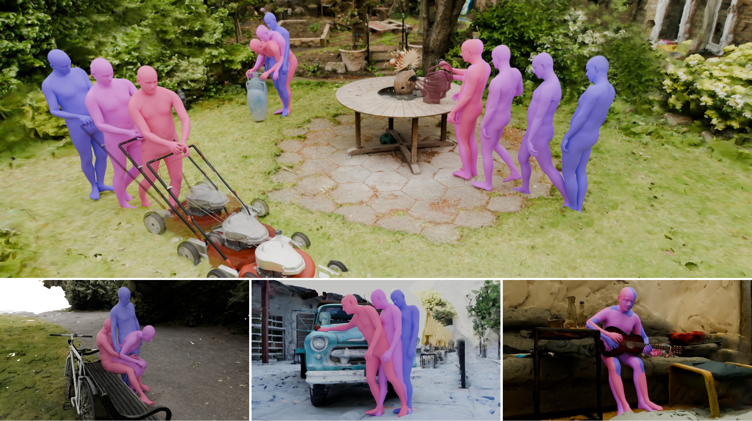 tl;dr: We present a framework that synthesizes multi-stage scene-aware human interaction motions from just text instructions and goal locations.
